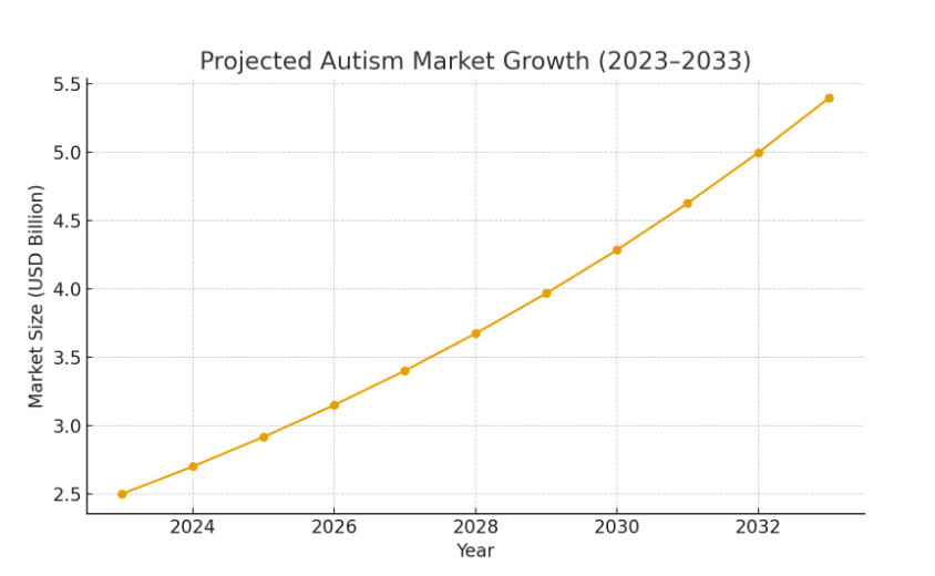 The global autism spectrum disorder (ASD) market is experiencing significant growth due to rising awareness, increasing diagnosis rates, and expanding access to specialized care. Valued at around USD 2–3 billion in 2023, the market is projected to grow steadily through 2033, driven by the demand for early intervention therapies, behavioral treatments, and advanced diagnostic tools.